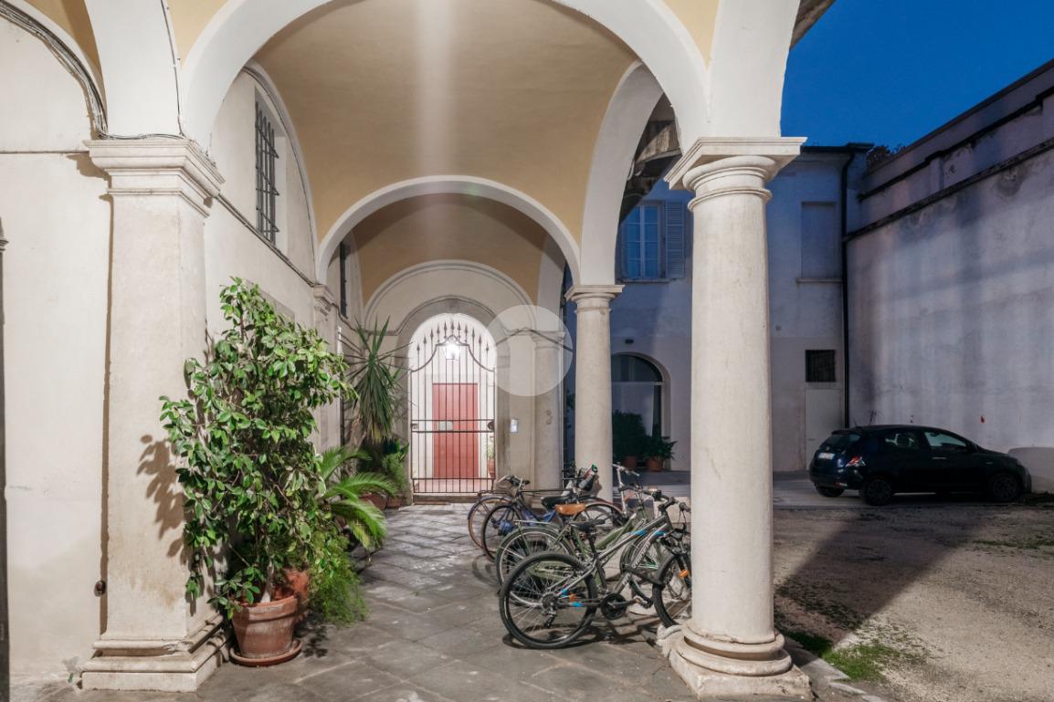 Una corte interna curata è a disposizione dei residenti con un'area apposita per il parcheggio delle biciclette, promuovendo spostamenti sostenibili e comodi in città.