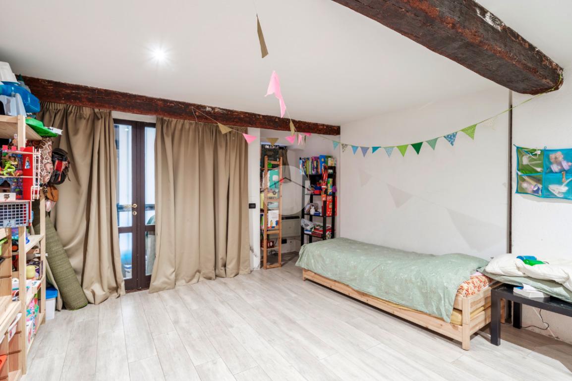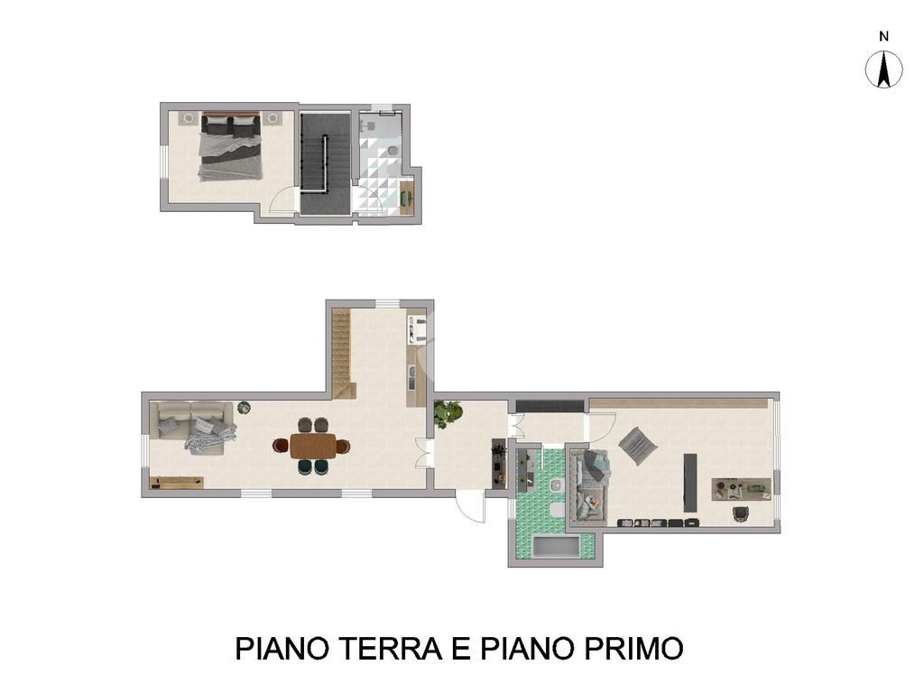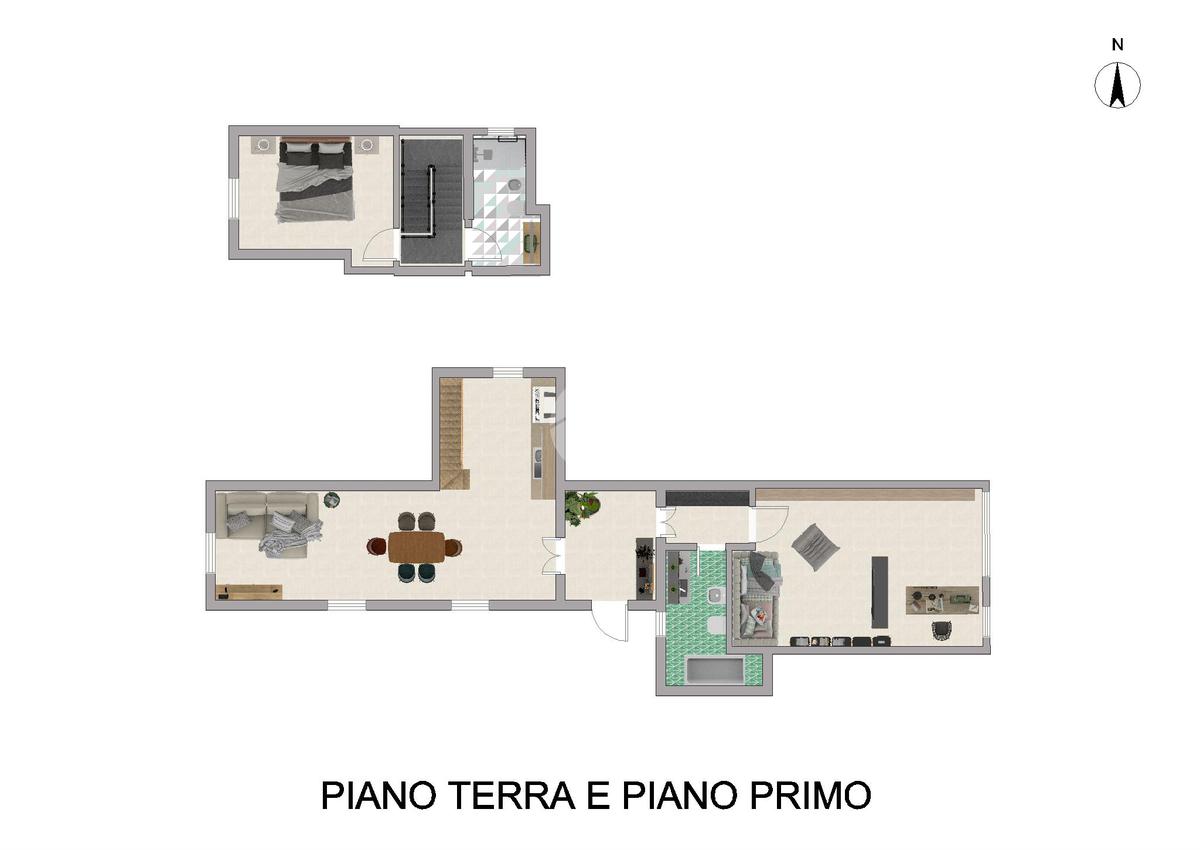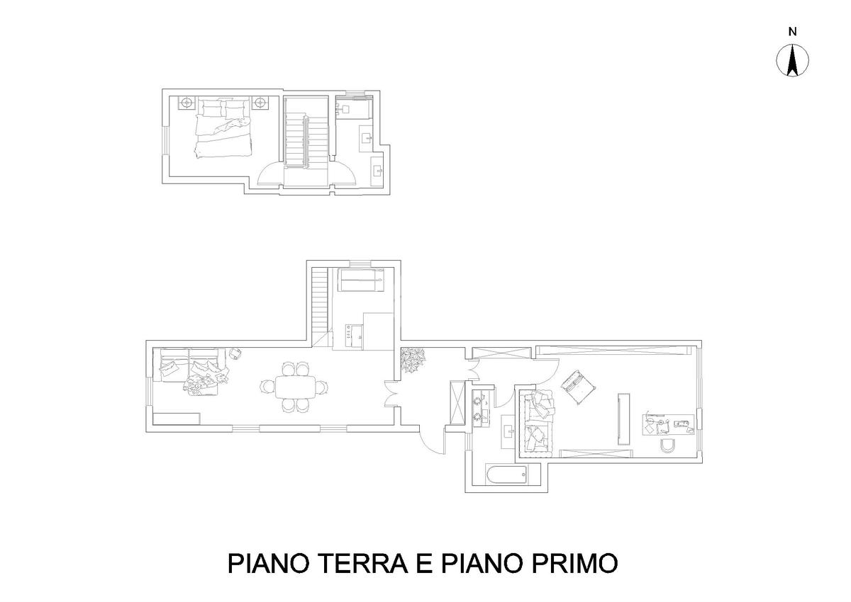 Al piano superiore, l'intimità e il comfort trovano la loro espressione in una comoda camera da letto, accompagnata da un ulteriore bagno finestrato.